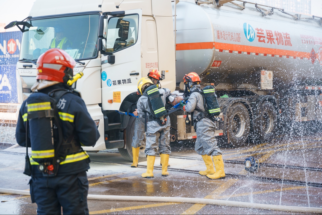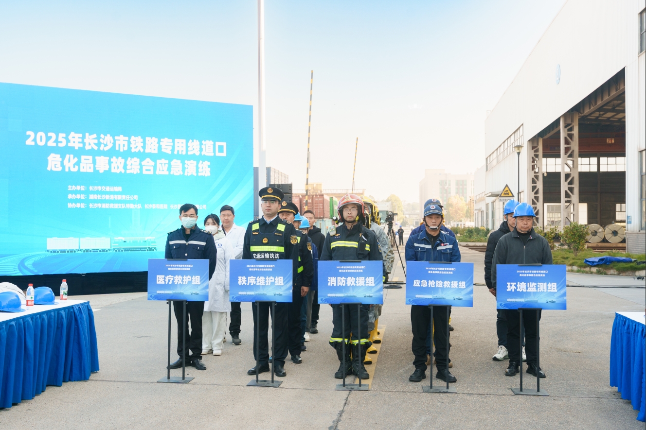 11月21日,2025年長(zhǎng)沙市鐵路專用線道口;肥鹿示C合應(yīng)急演練在長(zhǎng)沙新港公司舉行,演練由長(zhǎng)沙市交通運(yùn)輸局主辦,長(zhǎng)沙新港公司承辦,長(zhǎng)沙市市生態(tài)環(huán)境局、開(kāi)福區(qū)消防救援大隊(duì)、長(zhǎng)沙泰和醫(yī)院參加。 演練模擬一輛裝有甲醇二甲胺的危化品槽罐車經(jīng)過(guò)鐵路道口時(shí),因雨天路滑發(fā)生事故,導(dǎo)致裝載物泄露,一名司乘人員被困車內(nèi),一列火車即將通過(guò)道口,情況十分危急。道口值班人員發(fā)現(xiàn)事故后,第一時(shí)間通知車站信號(hào)樓,并緊急采用手旗信號(hào)截停列車,避免發(fā)生二次事故并造成更嚴(yán)重的后果,同時(shí),值班員迅速向長(zhǎng)沙新港公司報(bào)告事故情況,包括泄漏罐車的位置、泄漏程度、是否有起火、人員受困或傷亡等信息,長(zhǎng)沙新港公司迅速啟動(dòng)應(yīng)急預(yù)案。應(yīng)急救援、警戒疏散等多個(gè)小組攜帶裝備5分鐘內(nèi)集結(jié)完畢,奔赴事故現(xiàn)場(chǎng)處置。隨后,消防救援人員、醫(yī)療救護(hù)人員、環(huán)境監(jiān)測(cè)人員等各司其職,聯(lián)合處置了這一起突發(fā)事件。