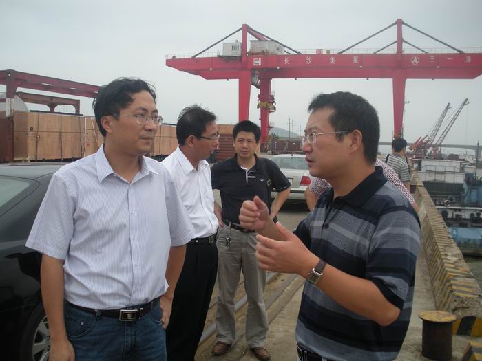 2010年9月8日,湖南省社科院研究員黃海一行在長沙市口岸辦副主任王光輝的陪同下,來長沙新港進行長沙水運口岸建設的調研。