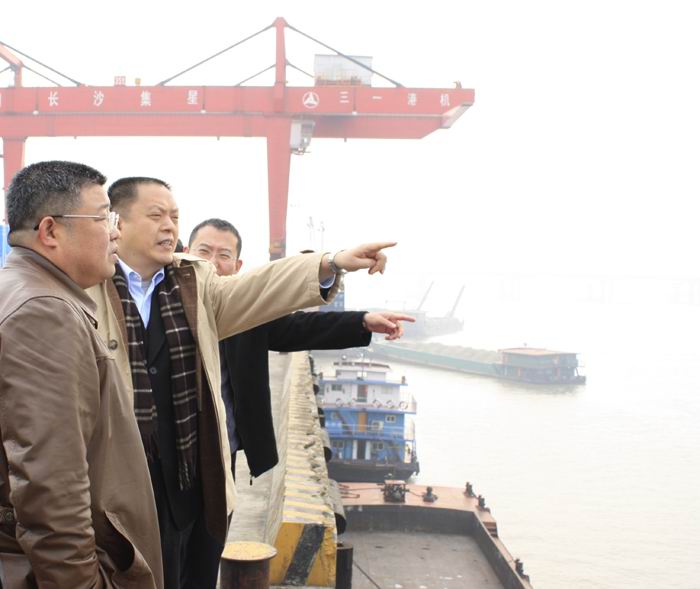 2011年12月8日,武漢新港管委會(huì)主任張林,副主任鄧萬想,副巡視員陶維烈一行,在長沙海關(guān)副關(guān)長栗晉斌陪同下,就加快發(fā)展集裝箱水運(yùn)中轉(zhuǎn)業(yè)務(wù),進(jìn)一步鞏固和擴(kuò)大武漢新港陽邏港中轉(zhuǎn)箱市場(chǎng),全面提升港口綜合實(shí)力,來我港考察調(diào)研。湖南長沙新港有限責(zé)任公司黨委副書記、董事、常務(wù)副總經(jīng)理唐忠良,長沙集星集裝箱碼頭有限公司副總經(jīng)理辛華、總經(jīng)理助理周勇等接待。雙方就湘江航道條件,主要集裝箱運(yùn)輸船舶船型,港口運(yùn)營情況,“五定”班輪運(yùn)營情況,港口建設(shè)發(fā)展規(guī)劃及目前港口發(fā)展建設(shè)中存在的主要問題和困難等進(jìn)行了座談,并共同探討兩港合作,共謀發(fā)展的路徑。集星公司副總經(jīng)理辛華進(jìn)行了專題匯報(bào),新港公司常務(wù)副總經(jīng)理唐忠良就湘江枯水對(duì)湖南航運(yùn)的影響,省、市政府對(duì)港口、航道建設(shè)的有關(guān)政策,長沙港口在區(qū)域經(jīng)濟(jì)發(fā)展中所發(fā)揮的作用及與公路、鐵路的優(yōu)劣比較等方面情況進(jìn)行了介紹。賓主雙方表示要加強(qiáng)兩港、兩地的友好合作,共謀發(fā)展大計(jì)。調(diào)研組一行還實(shí)地考察了集星集裝箱碼頭。 |