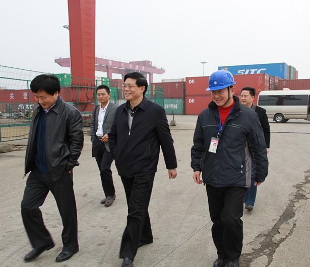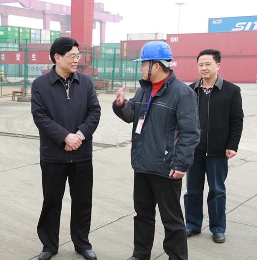2月28日,湖南省委副秘書長、省委政策研究室主任賀安杰等領(lǐng)導(dǎo)一行來長沙新港考察調(diào)研。湖南長沙新港有限責(zé)任公司董事、長沙集星集裝箱碼頭有限公司副總經(jīng)理辛華,新港公司辦公室主任王偉宏接待。 在集裝箱碼頭上,公司領(lǐng)導(dǎo)辛華向省領(lǐng)導(dǎo)一行詳細(xì)介紹了長沙新港一、二期工程建設(shè)規(guī)模及運(yùn)營情況,匯報了新港三期工程建設(shè)的進(jìn)展以及目前存在如港口功能不配套、企業(yè)資金不足、湘江長沙綜合樞紐建成后對港口的影響等情況。賀秘書長強(qiáng)調(diào),長沙新港三期工程建成后,港口的功能將更加完善,有利于更好地服務(wù)湖南省外向經(jīng)濟(jì)發(fā)展。 |