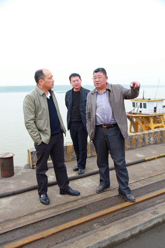會后,胡岳龍書記在公司董事長、總經(jīng)理唐忠良和公司董事、長沙集星集裝箱碼頭有限公司副總經(jīng)理辛華的陪同下對長沙新港碼頭生產(chǎn)情況進行了實地考察調(diào)研。