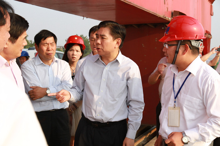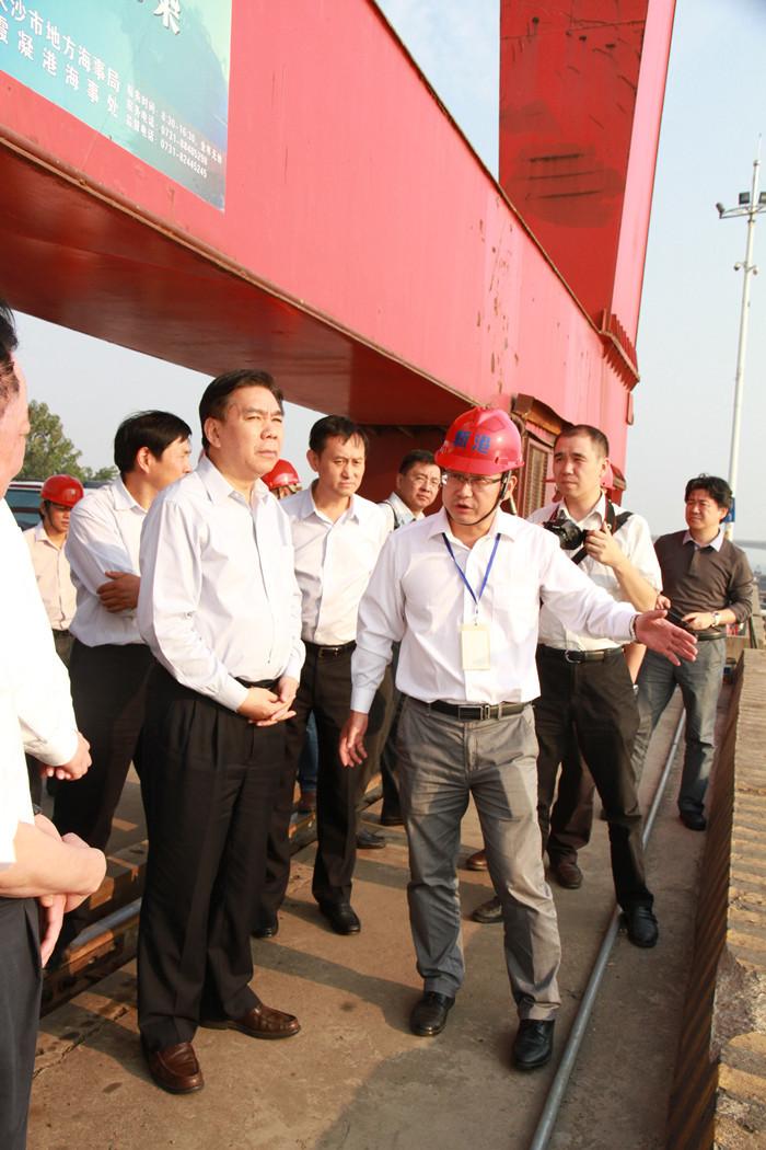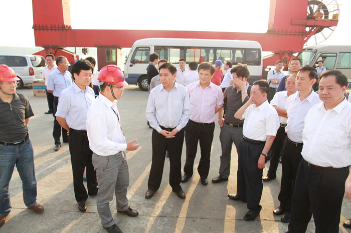 10月14日下午,國家發(fā)改委副主任徐憲平,交通運輸部綜合規(guī)劃司副司長蘇杰,國家發(fā)改委基礎(chǔ)產(chǎn)業(yè)司司長黃民,國家發(fā)改委規(guī)劃司副司長袁喜祿等領(lǐng)導(dǎo)一行,在湖南省人民政府副省長陳肇雄,長沙市領(lǐng)導(dǎo)余合泉等領(lǐng)導(dǎo)的陪同下就長江經(jīng)濟帶建設(shè)來長沙新港調(diào)研。湖南長沙新港有限責(zé)任公司董事長、總經(jīng)理、黨委副書記唐忠良,董事、副總經(jīng)理張韜,董事、長沙集星集裝箱碼頭有限公司副總經(jīng)理辛華等接待。 在長沙新港集裝箱碼頭上,集星公司副總經(jīng)理辛華首先向徐憲平副主任一行介紹了長沙新港一、二期碼頭規(guī)模、貨源、業(yè)務(wù)、運營等情況,著重介紹了湘江長沙綜合樞紐試通航初期和長沙海事為長沙新港開辟樞紐“綠色通道”后,碼頭業(yè)務(wù)及生產(chǎn)情況對比。辛華介紹說:“樞紐‘綠色通道’開辟以來,船舶進(jìn)出閘通過艘次提高26.84%;集裝箱吞吐量達(dá)46412標(biāo)箱,比‘綠色通道’開辟之前提高86.28%。”隨后,新港公司副總經(jīng)理張韜向徐憲平副主任一行介紹了三期工程規(guī)劃、建成規(guī)模、建設(shè)進(jìn)展等情況。 徐憲平副主任指出,湖南這些年發(fā)展迅速,強大的水運網(wǎng)絡(luò)給予了湖南對外經(jīng)濟發(fā)展強大的支持。長沙新港碼頭地理位置優(yōu)越,硬件設(shè)施完備,足夠滿足碼頭日常生產(chǎn)需求;港口規(guī)劃及管理科學(xué)規(guī)范,集裝箱碼頭管理系統(tǒng)十分先進(jìn);碼頭生產(chǎn)井然有序,一派繁忙景象。徐憲平副主任肯定了長沙新港這幾年建設(shè)、經(jīng)營所取得的成績并強調(diào),三期建成后,港口功能將更加完善,有望成為國內(nèi)一流的現(xiàn)代化內(nèi)河港口,長沙新港前景可觀。 |