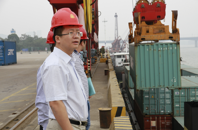 10月11日,就長江中游城市綜合運輸服務一體化發(fā)展現(xiàn)狀,交通運輸部規(guī)劃設計院副所長、高級工程師杜江濤及湖北省交通運輸廳等領導一行調研長沙新港,省交通運輸廳運輸處副處長謝伯平,市交通運輸局副局長李宏等領導陪同調研,新港公司董事、副總經(jīng)理辛華負責接待,新港公司市場部,凱達物流公司、公司辦公室負責人參加座談。