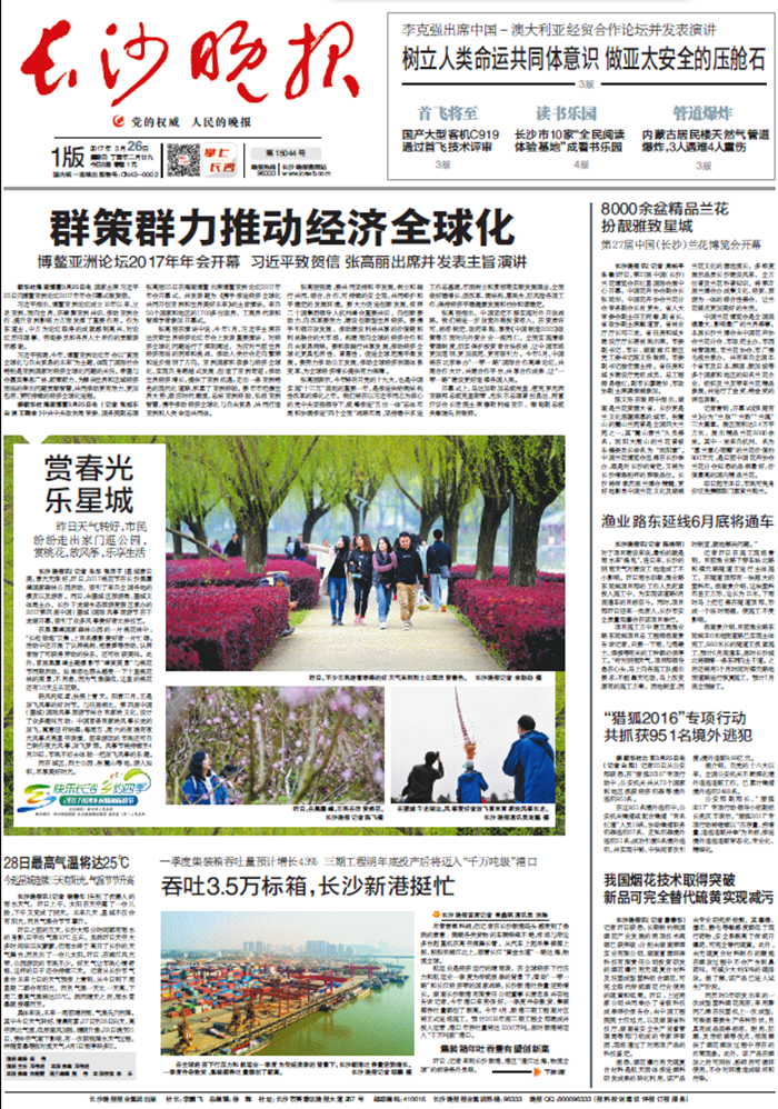 長沙市第十三次黨代會上,省委常委、市委書記易煉紅提出長沙將建設(shè)全國中心城市,全力打造“三個中心”,長沙新港作為水運交通樞紐,對于我市打造國家交通物流中心意義重大,港口經(jīng)濟不斷升溫。今年一季度,港口生產(chǎn)形勢步步看漲,生產(chǎn)數(shù)據(jù)屢屢刷新。一季度共完成港口吞吐量166.5萬噸,其中集裝箱吞吐3.65萬標箱,較去年同期相比增長44%,件雜散貨吞吐93.5萬噸,較去年同期相比增長60%。 眾所周知,航運業(yè)是經(jīng)濟運行的晴雨表,在全球經(jīng)濟下行壓力和航運業(yè)一季度內(nèi)傳統(tǒng)淡季的背景下,借助“一帶一路”和長江經(jīng)濟帶的國家戰(zhàn)略,長沙新港一季度強勢“亮相”,吞吐量逆勢增長,給全市的經(jīng)濟指標注入了一股亮眼色彩,各大媒體爭相報道。3月下旬,《長沙晚報》、《湖南日報》、湖南衛(wèi)視、湖南經(jīng)視、紅網(wǎng)等主流媒體相繼到港采訪,湖南長沙新港有限責(zé)任公司董事長、總經(jīng)理唐忠良接受采訪。 “今年港口來勢很好,一季度,港口件雜散貨、集裝箱吞吐量雙雙創(chuàng)了新高。件雜散貨一季度吐吞量93.5萬噸,同比增長60%;集裝箱吞吐3.65萬標箱,同比增長44%。其中,港口集裝箱貨物以外貿(mào)為主,主要通過上海港運至世界各地,一季度集裝箱量的迅猛增長,反映出港口物流對外向型經(jīng)濟發(fā)展的重要助推作用。”唐總興奮地向記者介紹道。 據(jù)統(tǒng)計,2016年長沙新港共完成貨物吞吐量614萬噸,同比增長12.4%,創(chuàng)歷史新高。根據(jù)今年港口貨運吞吐量的強勁增長勢頭,今年有望再創(chuàng)歷史新高,特別是港口集裝箱,計劃突破14萬標箱,有望達到15萬標箱,創(chuàng)歷史新高。 港口生產(chǎn)熱火朝天,三期建設(shè)馬不停蹄。唐總介紹道:“今年4月,新港三期工程南片區(qū)將正式進場施工,預(yù)計2018年底三期工程全部建成并投入運營,預(yù)計2018年,長沙港霞凝港區(qū)三期工程將竣工投產(chǎn)。”屆時,長沙新港年吞吐量將達到1200萬噸,邁入千萬噸級港口行列。長沙港將實現(xiàn)集進出口集裝箱、大宗件雜貨、滾裝、散貨裝卸運輸于一體,“水鐵”無縫對接的現(xiàn)代化“黃金港口”,成為我市打造“交通物流中心”不可或缺的物流公共平臺。 3月25日,湖南經(jīng)視“經(jīng)視觀察”欄目播出新聞專題節(jié)目《打通這一公里 企業(yè)可省千萬元》,重點報道長沙新港“鐵水聯(lián)運”項目;3月26日《長沙晚報》A01版、28日《湖南日報》頭版分別以《吞吐3.5萬噸標箱,長沙新港挺忙》和《長沙新港好繁忙》為題,進行大篇幅圖文報道,《掌上長沙》、《新湖南》客戶端分別對新聞進行了轉(zhuǎn)載。長沙新港在各大主流媒體頻繁“刷臉”,再一次成為社會關(guān)注的焦點。 |