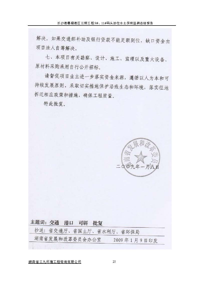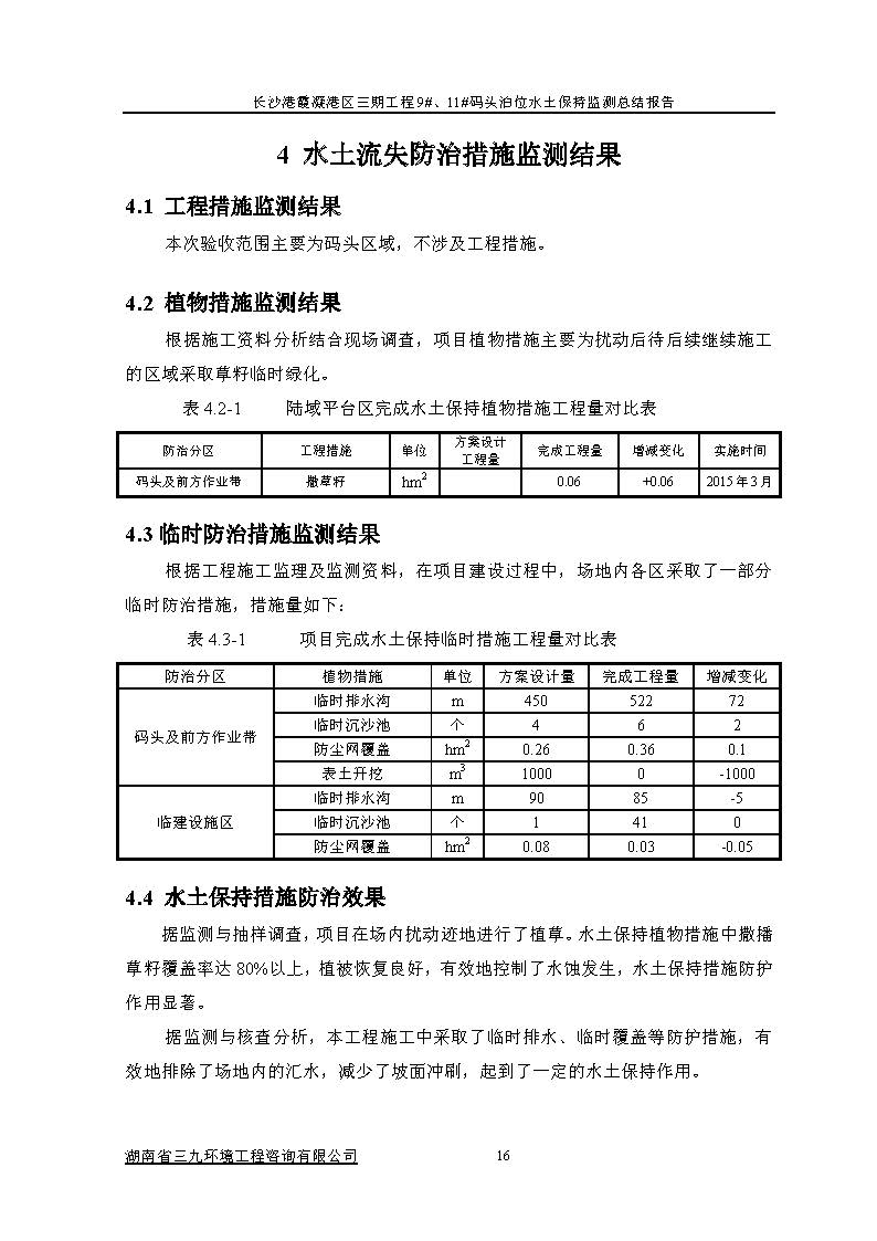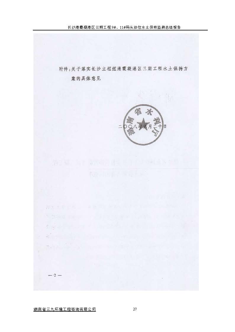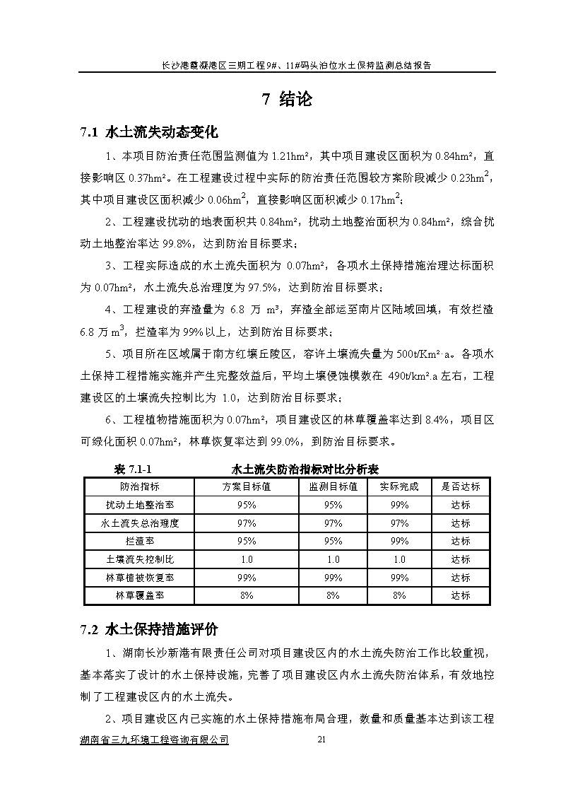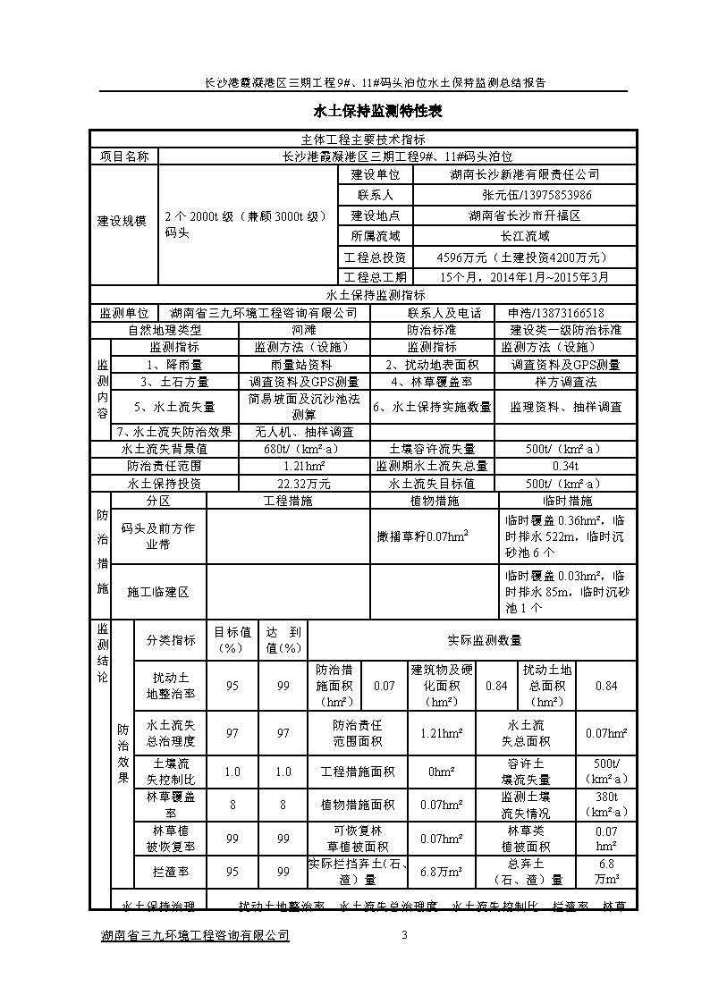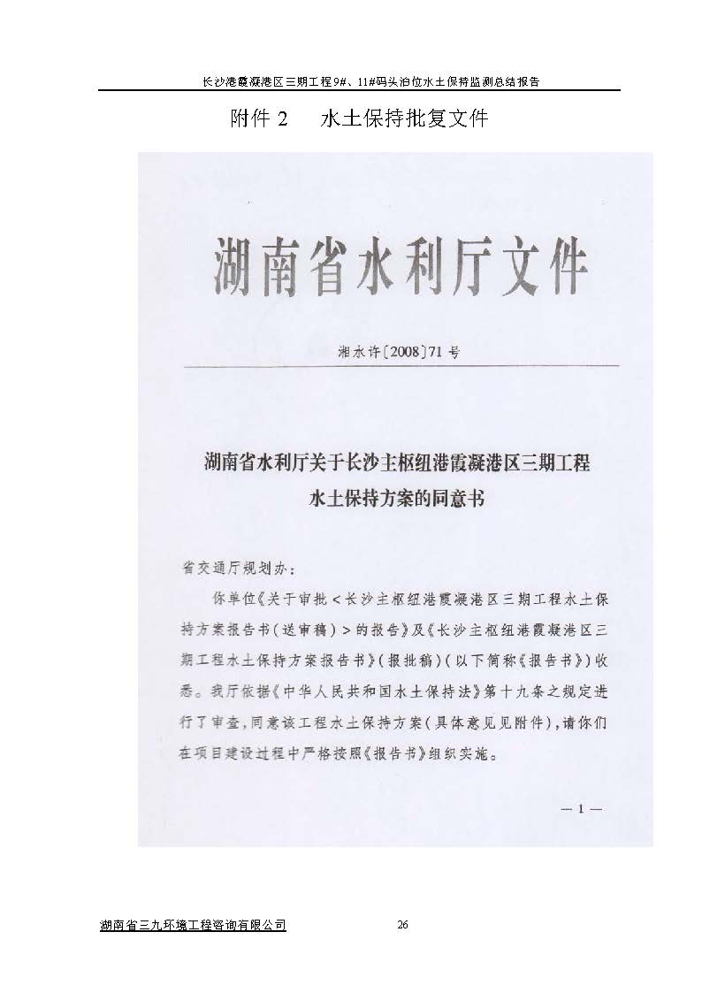 根據(jù)水利部關(guān)于加強(qiáng)事中事后監(jiān)管規(guī)范生產(chǎn)建設(shè)項目水土保持設(shè)施自主驗收的通知(水保(2017) 365號)、《湖南省水利廳關(guān)于下放部分生產(chǎn)建設(shè)項目水土保持方案審批權(quán)限的通知》(湘水辦[2017]116號)和《長沙市水務(wù)局關(guān)于簡化生產(chǎn)建設(shè)項目水土保持方案及水土保持設(shè)施驗收有關(guān)事項的通知》(長水發(fā)〔2017〕27號)規(guī)定,2018年7月3日,湖南長沙新港有限責(zé)任公司主持召開了長沙港霞凝港區(qū)三期工程9#、11#碼頭泊位水土保持設(shè)施驗收會議,會議成立了驗收組。 通過深入工程現(xiàn)場核查,并查閱相關(guān)檔案資料,驗收小組認(rèn)為本工程積極落實了各施工區(qū)域的水土流失防治工作,水土保持設(shè)施質(zhì)量總體合格,水土流失防治指標(biāo)達(dá)到了水土保持方案確定的目標(biāo)值,符合水土保持設(shè)施竣工驗收的條件。驗收組一致同意長沙港霞凝港區(qū)三期工程9#、11#碼頭泊位水土保持設(shè)施通過驗收。經(jīng)驗收組與會議審議,形成了《長沙港霞凝港區(qū)三期工程9#、11#碼頭泊位水土保持設(shè)施自查驗收鑒定書》。