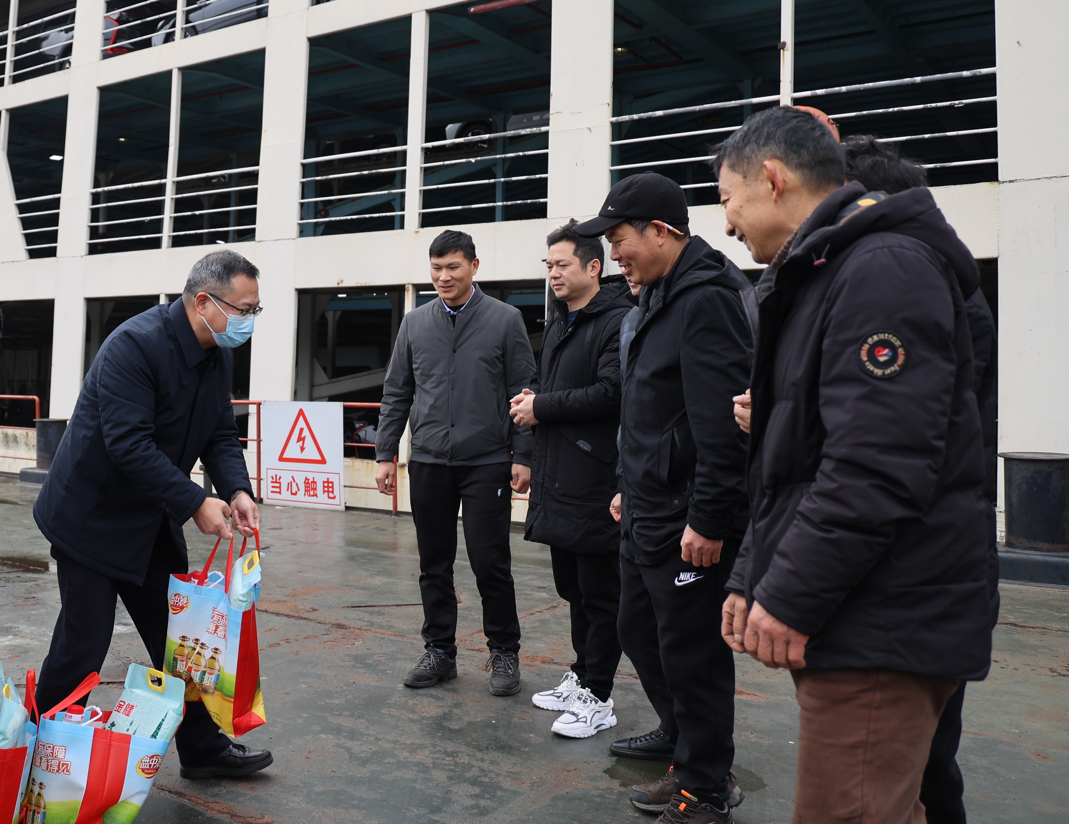 春節(jié)將至,歲寒情深。船員作為一個特殊的職業(yè)群體,工作和生活在船舶上需面對惡劣氣候、封閉環(huán)境、緊張工作等情況,常年不能回家,新春佳節(jié)更難以與家人團(tuán)聚。為了讓在港船舶在長沙港度過一個歡樂祥和的春節(jié),2022年1月30日,新港公司黨委副書記、總經(jīng)理辛華,黨委委員、紀(jì)委書記黃紅星及副總經(jīng)理鄭美洲帶領(lǐng)市場營銷部、生產(chǎn)運營部工作人員對已到港船舶進(jìn)行春節(jié)前的親切慰問,并給予安全提醒。  聲聲問候顯真情,句句話語暖人心。船員們表示非常感謝來自新港公司的慰問和節(jié)日祝福,在平時的工作中已感受到了新港人的高素質(zhì)和專業(yè)化水平,節(jié)日期間更感受到了新港公司優(yōu)質(zhì)服務(wù)和人性化服務(wù),讓漂泊在外的船員們感受到了滿滿的關(guān)懷和溫暖。 |