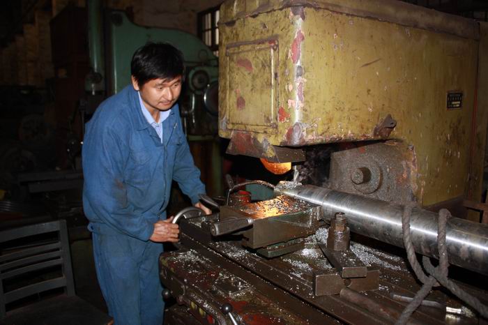 楊建安同志從來(lái)都是碰到越有難度的加工活,他越有興趣,越喜歡從中摸索,敢于接受任何技術(shù)上的挑戰(zhàn),這次也不例外。通過(guò)對(duì)需維修設(shè)備的了解和初步分析,他想出了最簡(jiǎn)單、最快捷的拆裝方法,用最短的時(shí)間將已經(jīng)斷裂的傳動(dòng)軸拆除了出來(lái)。他充足的干勁、熟練的操作都感染著在場(chǎng)所有的人。只見(jiàn)他認(rèn)真地挑選好材料毛坯,細(xì)致地磨好所需刀具,一絲不茍、聚精會(huì)神,干起活來(lái)。在他的精心操作下,經(jīng)過(guò)兩個(gè)多小時(shí)搶制,新的傳動(dòng)軸加工出來(lái)了,且規(guī)格和標(biāo)準(zhǔn)都符合裝配要求,在場(chǎng)的所有人才放心地松了口氣。