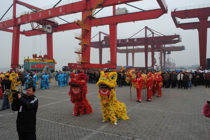 2009年12月28日上午,長沙霞凝新港彩旗飄舞,禮花怒綻。11時許,隨著第10萬個集裝箱順利起吊,長沙新港2009年集裝箱吞吐量歷史性地突破了10萬標箱,創(chuàng)歷史最高紀錄。這也標志著長沙港邁上國內(nèi)內(nèi)河支線港口領(lǐng)先地位。 “2004年共吞吐集裝箱5.61萬標箱,到2008年完成9.41萬標箱,2009年在沿海各港口吞吐量普遍下降的情況下,長沙新港仍逆勢增長,比2008年增加7000標箱,一舉突破10萬標箱。”湖南長沙新港有限責任公司董事長石道國對這些數(shù)據(jù)倒背如流。 今年以來,面對國際金融危機和湘江枯水的雙重影響,作為全國內(nèi)河28個主要港口之一的長沙新港堅持積極靈活的營銷策略,一方面大力發(fā)展內(nèi)貿(mào)業(yè)務(wù), 一方面走出去積極培養(yǎng)新市場。 目前,該港巳擁有7條國際集裝箱內(nèi)河支線運輸線,開辟了歐洲、澳洲、非洲、南美等數(shù)十條國際航線,每周有進出口國際集裝箱航班40多個,貨物通過湘江入長江經(jīng)上海港中轉(zhuǎn)運往世界各地,形成了通江達海物流全球的水路網(wǎng)絡(luò)體系。 |