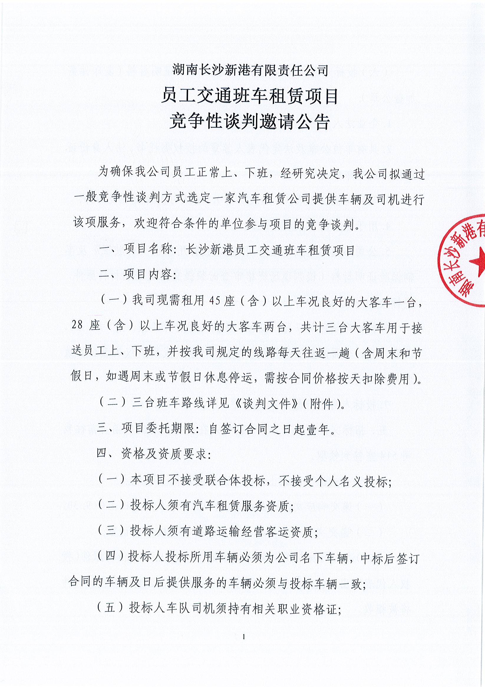 湖南長(zhǎng)沙新港有限責(zé)任公司員工交通班車租賃項(xiàng)目競(jìng)爭(zhēng)性談判邀請(qǐng)公告