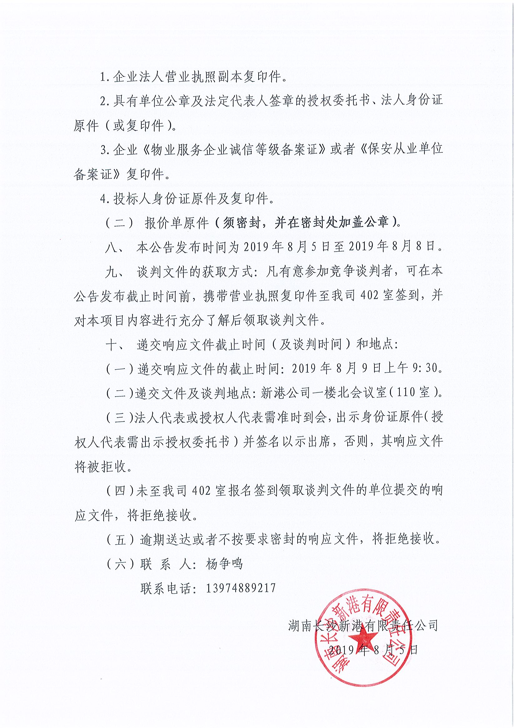 長沙新港門衛(wèi)及辦公樓安保服務(wù)項目競爭性談判邀請公告