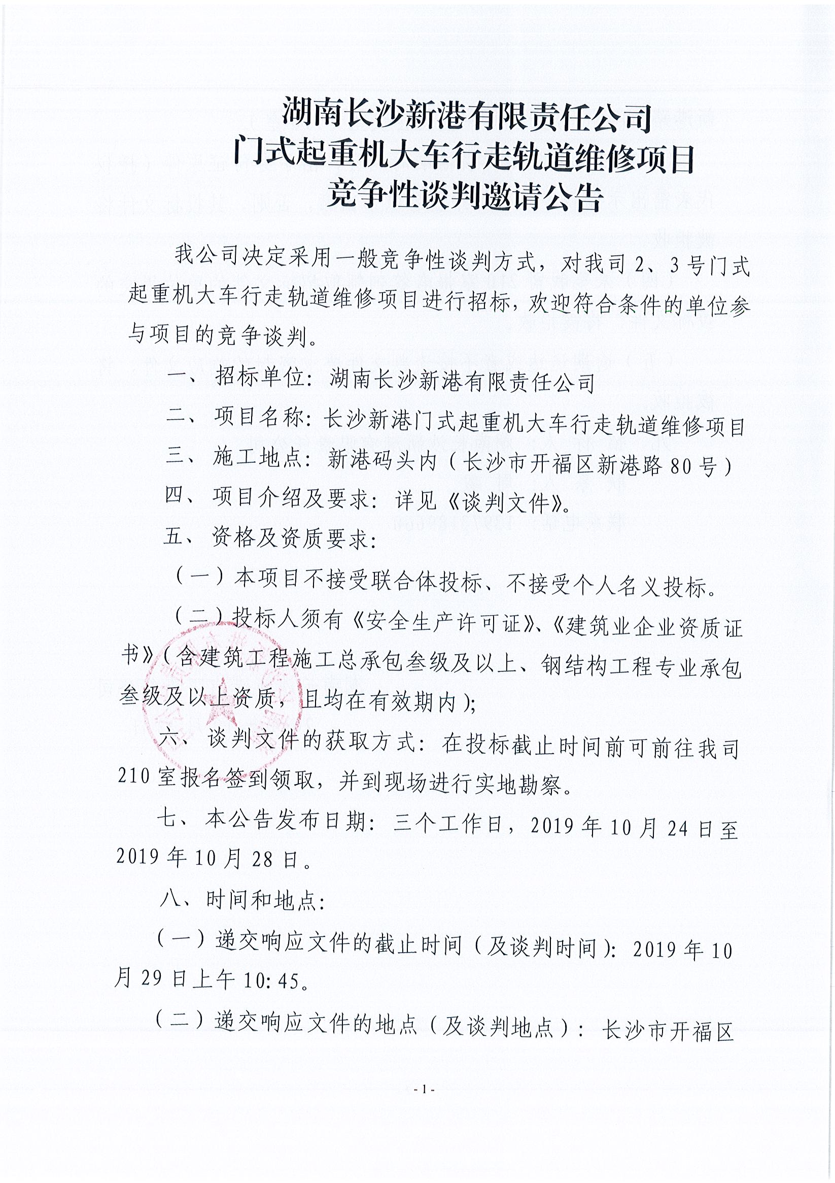 湖南長(zhǎng)沙新港有限責(zé)任公司門式起重機(jī)大車行走軌道維修項(xiàng)目競(jìng)爭(zhēng)性談判邀請(qǐng)公告