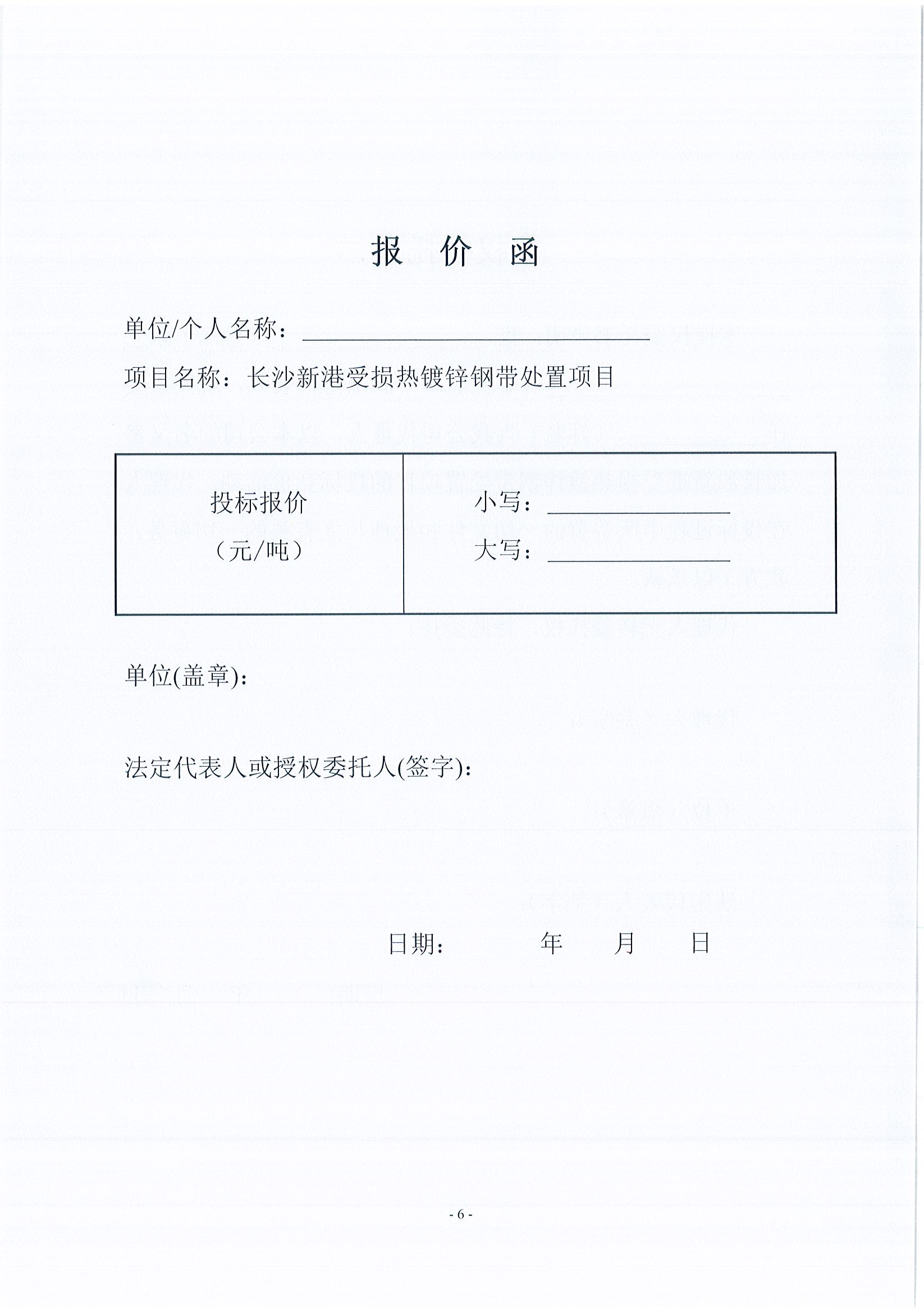 湖南長沙新港有限責任公司受損熱鍍鋼帶外置競價文件