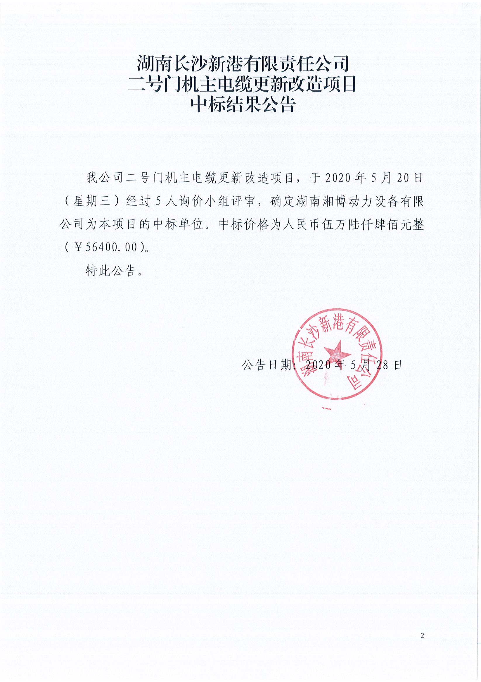 二號(hào)門(mén)機(jī)主電纜更新改造項(xiàng)目《中標(biāo)結(jié)果公告》