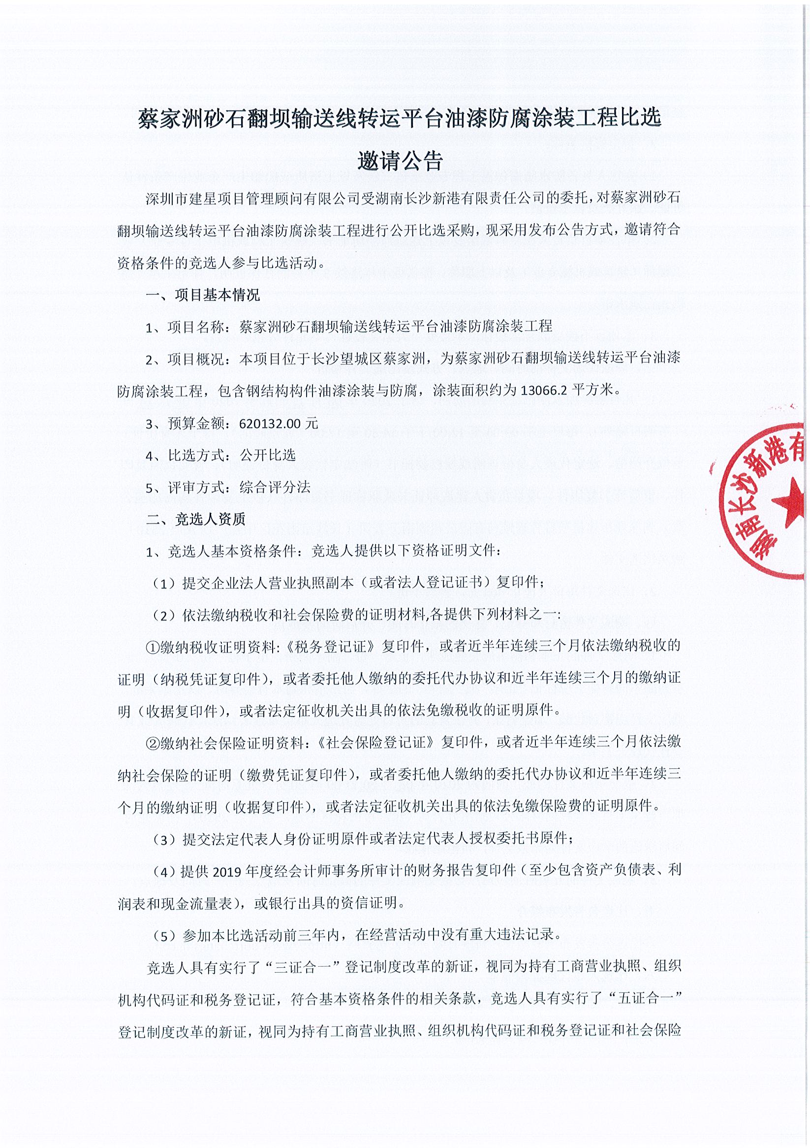 蔡家洲砂石翻壩輸送線轉(zhuǎn)運平臺油漆防腐涂裝工程比選邀請公告