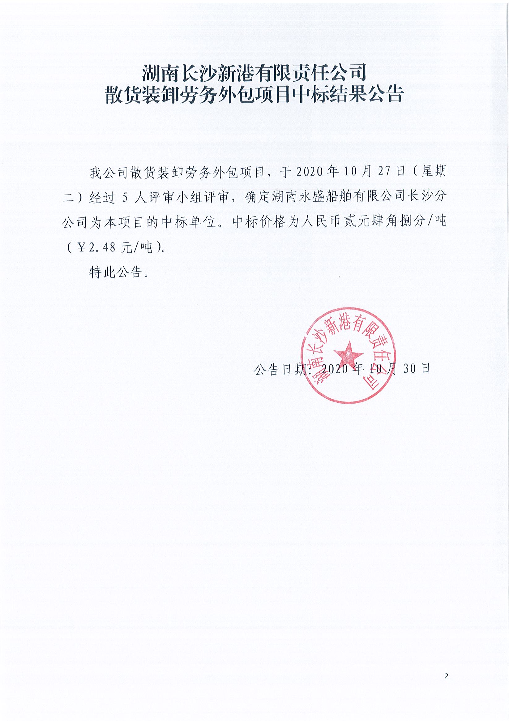 散貨裝卸勞務(wù)外包項(xiàng)目中標(biāo)結(jié)果公告