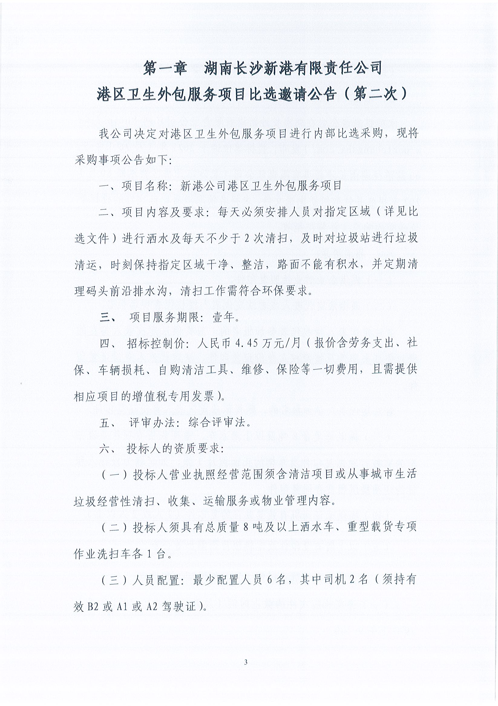 湖南長(zhǎng)沙新港有限責(zé)任公司港區(qū)衛(wèi)生外包服務(wù)項(xiàng)目比選邀請(qǐng)公告(第二次))