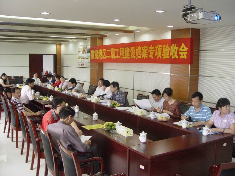 2010年6月7日,湖南省交通運(yùn)輸廳副巡視員郭紫星、辦公室副主任周超,省檔案局副局長(zhǎng)胡振榮、業(yè)務(wù)處處長(zhǎng)白明標(biāo)、業(yè)務(wù)處副處易小青,省交通建設(shè)質(zhì)量監(jiān)督室主任周榮輝、基建處副處長(zhǎng)易儉一行,對(duì)霞凝新港二期工程建設(shè)檔案進(jìn)行專項(xiàng)驗(yàn)收。