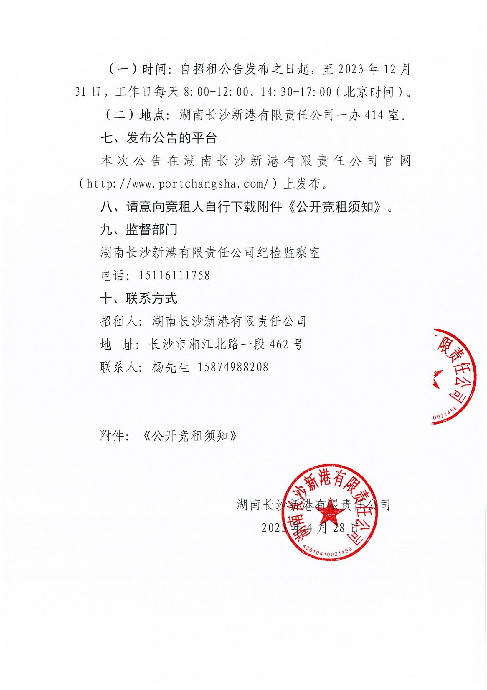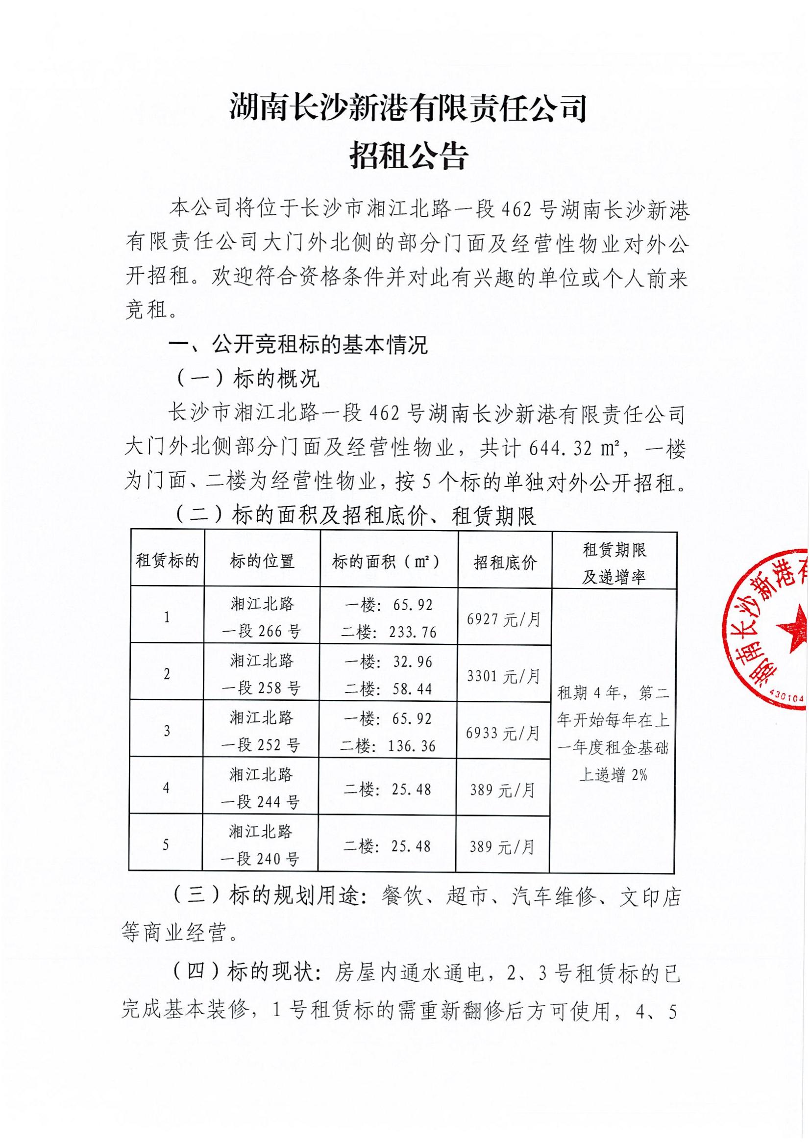 湖南長沙新港有限責(zé)任公司招租公告