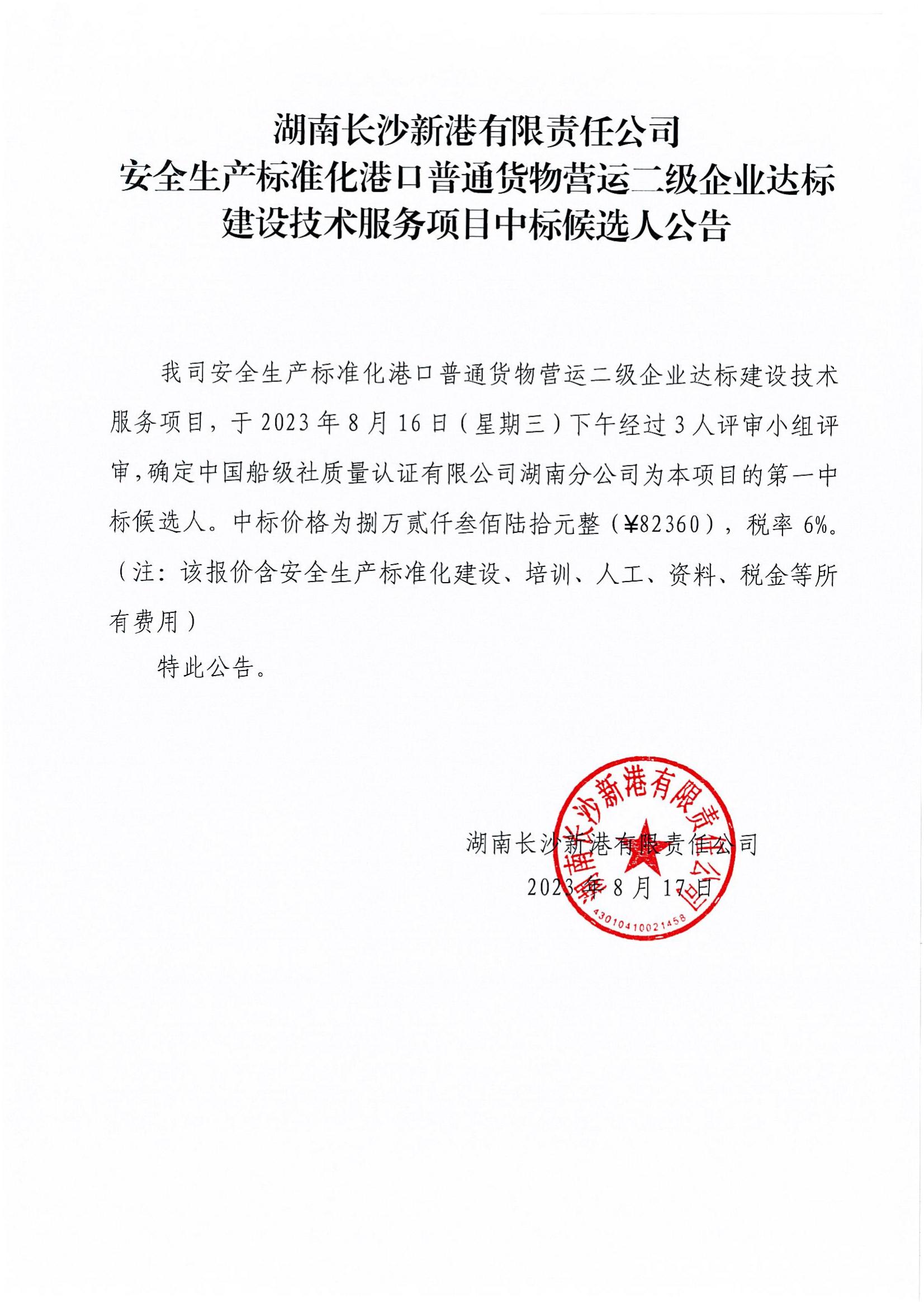 安全生產(chǎn)標(biāo)準(zhǔn)化港口普通貨物營運(yùn)二級(jí)企業(yè)達(dá)標(biāo)建設(shè)技術(shù)服務(wù)項(xiàng)目中標(biāo)候選人公告